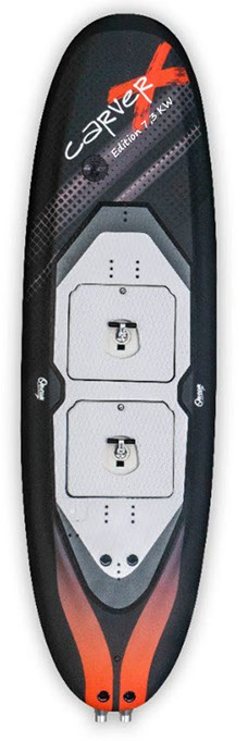 Für Gewässer, auf denen die erlaubte Motorleistung von Wasserfahrzeugen begrenzt wird, haben wir mit dem CARVER X "Edition 7.3 KW" ein Board, das durch zwei Jets trotz Leistungsbegrenzung genug power hat, um schnell ins Gleiten zu kommen.